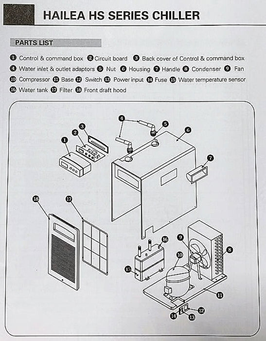 - During/after transporting and/or fixing up the chiller, allow it to stand upright for at least 3-6 hours before powering it up. This reduces unnecessary damage by allowing the oil and fluid to flow back into the compressor.